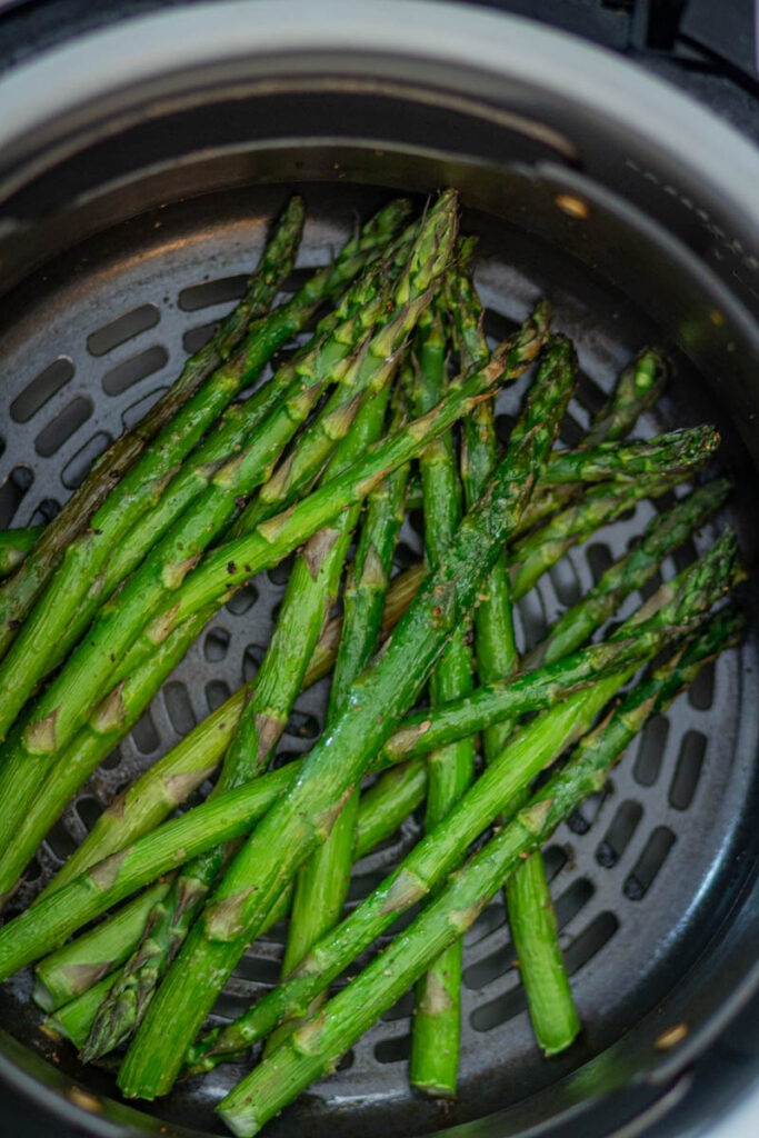 You can store air-fried or roasted asparagus in the air-tight container in the refrigerator or freezer. Refrigerate for 3-5 days in an air-tight container. For storing in the freezer, place asparagus in freezer-safe containers or bags. You can keep it in the freezer for 1-2 months. When reusing, reheat it in an air fryer or in the oven until it is crispy & tender.