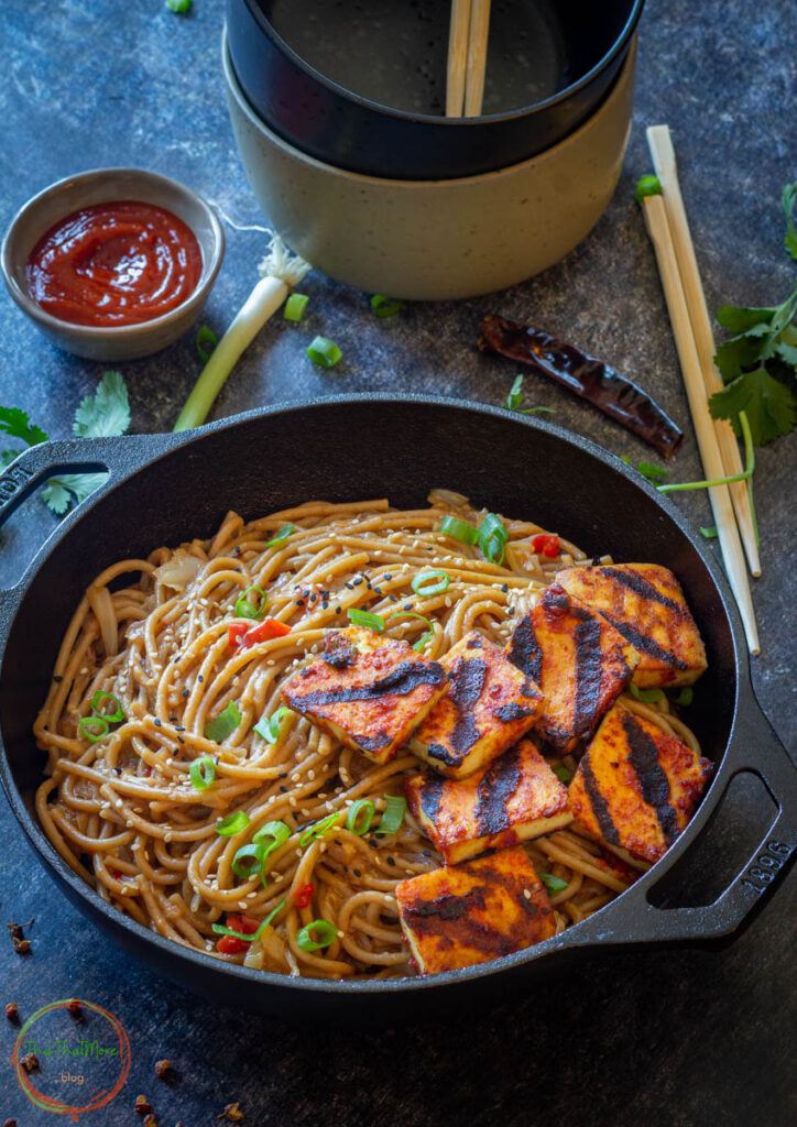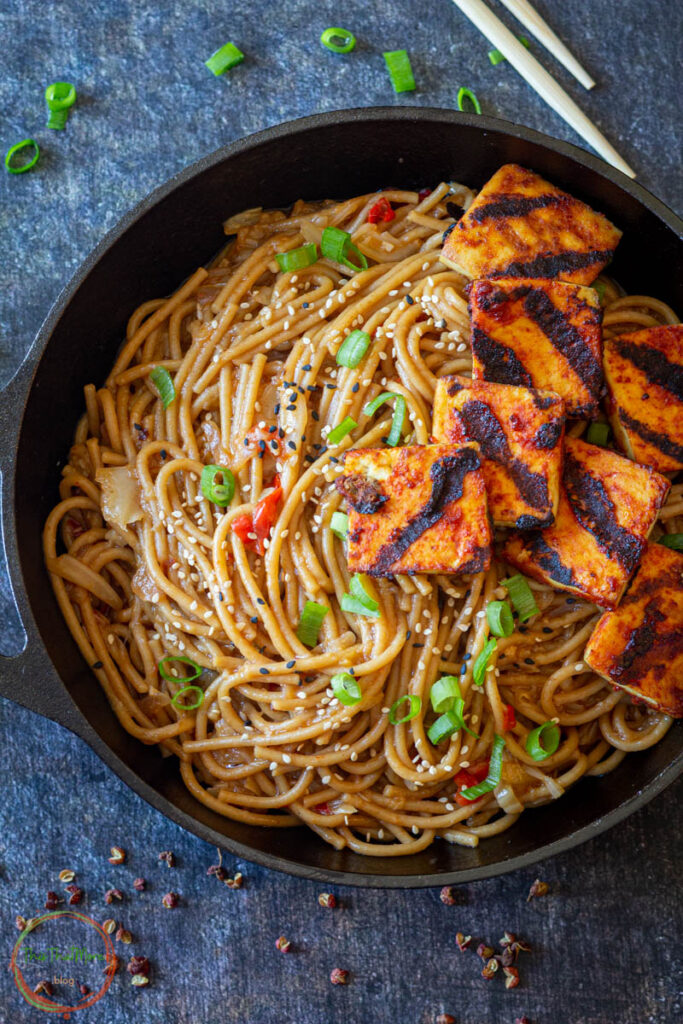 This is a perfect weeknight meal that can be made in under 20 minutes. You can add any vegetables to your liking and top with some crispy Tofu. The more vegetables you add, the more flavorful noodles are gonna be.