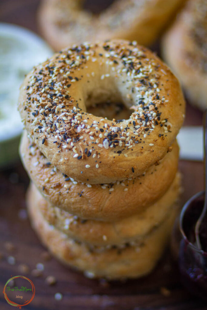- ADD SEASONING: You can add seasoning like everything bagels or fried onion or sesame seeds. Add the seasoning just after bagels come out of the water bath and are still wet. Seasoning will not stick if the water is dried out from the bagels.
