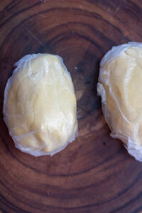 - Roll the dough into a ball and transfer it into a plastic wrap. Let it sit in the refrigerator for 2 hours or in the freezer for 15-20 minutes.