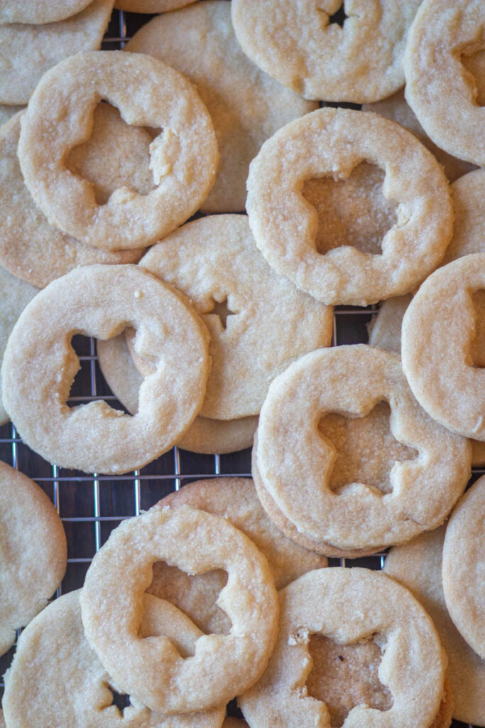 - Use a cookie cutter to cut cookies in equal sizes. Also, make an inner cut-out in half of the cookies. Transfer prepared cookies to a baking sheet and bake for 10-12 minutes until the sides start to get brown. Let them cook completely then dust powdered sugar over half of the cookie that has inner cut-outs.