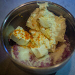 - Add sugar and purple sweet potato and mix them together. Then add cream cheese, heavy cream, orange extract, vanilla extract or Ube extract, Ube jam, and blend until smooth.