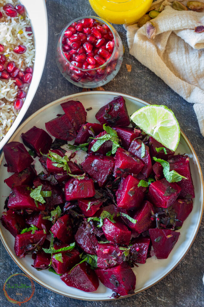 Beets salad is so easy to make, just toss cooked beets in a bowl with seasoning and lemon juice and serve. Beets itself has such a nice flavor that you need to add a lot of ingredients.