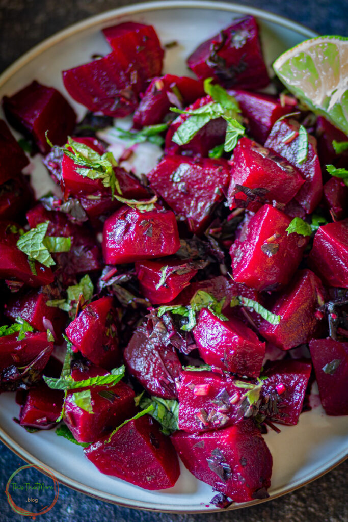 Beets salad is so easy to make, just toss cooked beets in a bowl with seasoning and lemon juice and serve. Beets itself has such a nice flavor that you need to add a lot of ingredients.