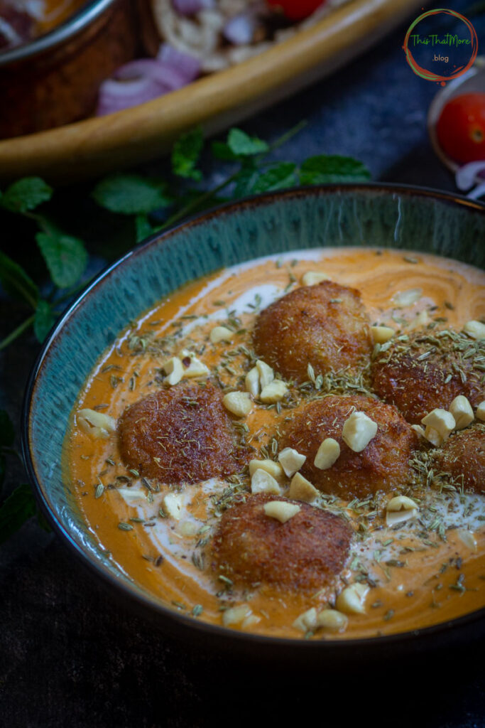 Malai Kofta is a vegetarian dish made by adding vegetable/potato dumpling (kofta) in creamy tomato curry. Malai Kofta is a very popular dish in India.