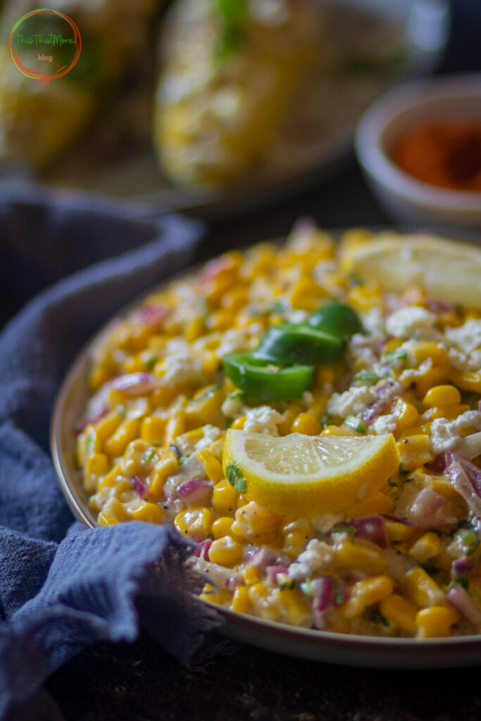 Corns are considered to be a rich source of fiber and also helps in eye development. This recipe of Mexican Street Corns is not healthy as it has butter and mayonnaise in it.