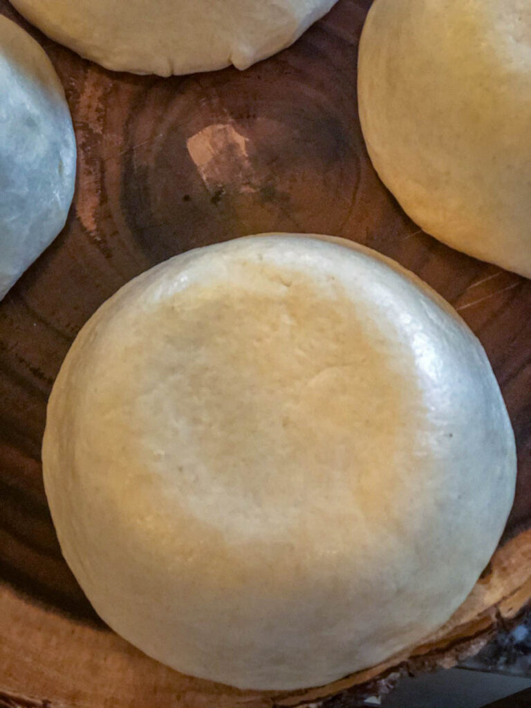 - Divide dough into 4-6 equal parts and roll them using a rolling pin in the shape of a roti/naan. Take a small/medium-size bowl and spray it with oil and flatten the dough at the outside of the bowl. Press & stretch the dough so that it covers the bowl.