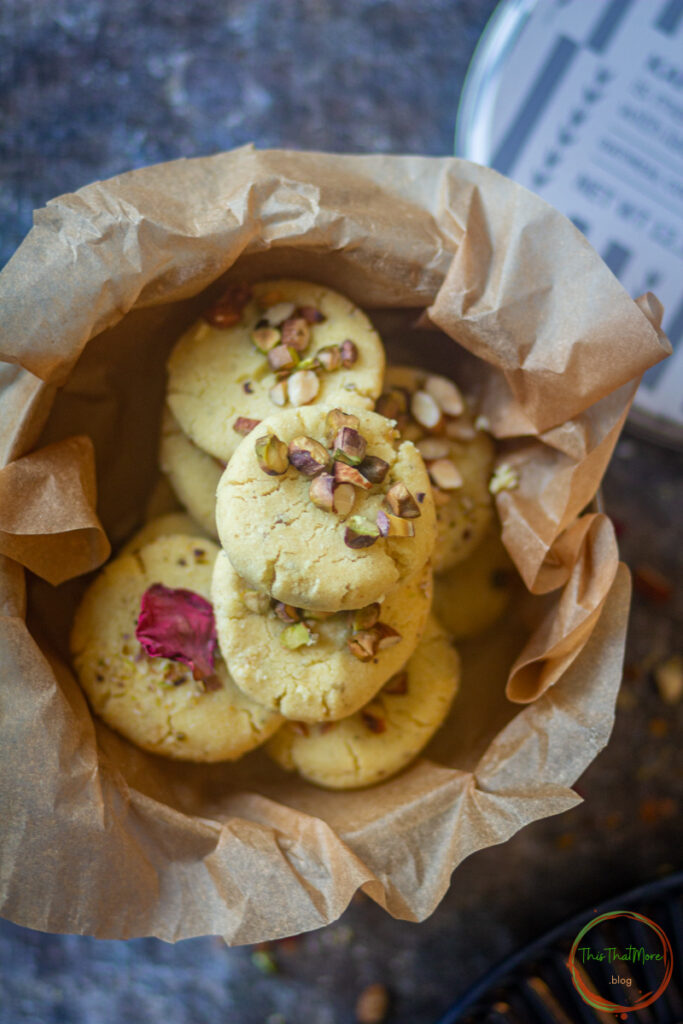 I do add an extra layer of flavoring to these delicious Indian cookies by adding cardamon powder & fennel powder in the cookie dough. I top them with roughly chopped nuts like pistachio, almonds & cashews.