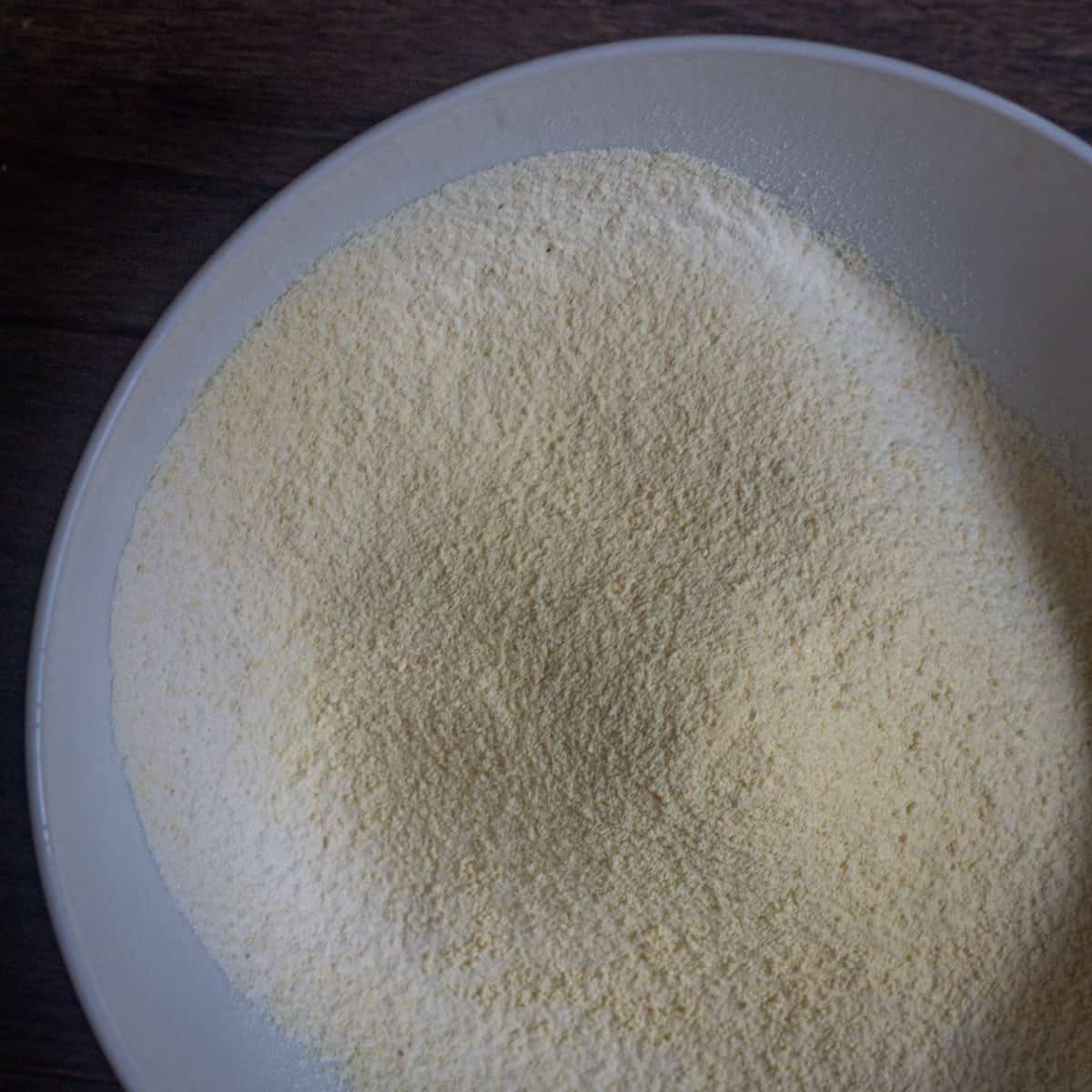 - SIEVE THE FLOUR: Make the flour mix by adding all-purpose flour, chickpea flour, and sooji in a bowl and then sieve the flour.
