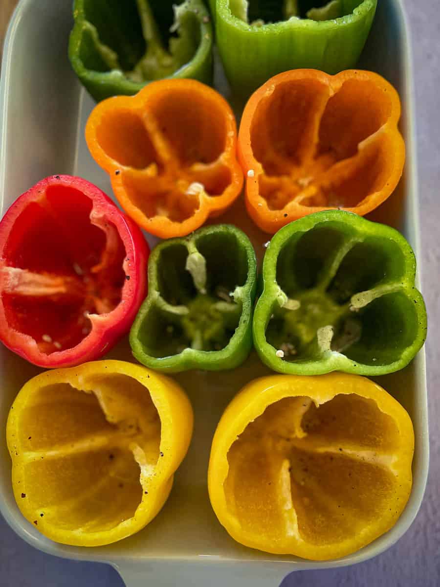 - CUT THE PEPPERS: Slice the top of the pepper including the stem and remove the seeds & ribs of the pepper.