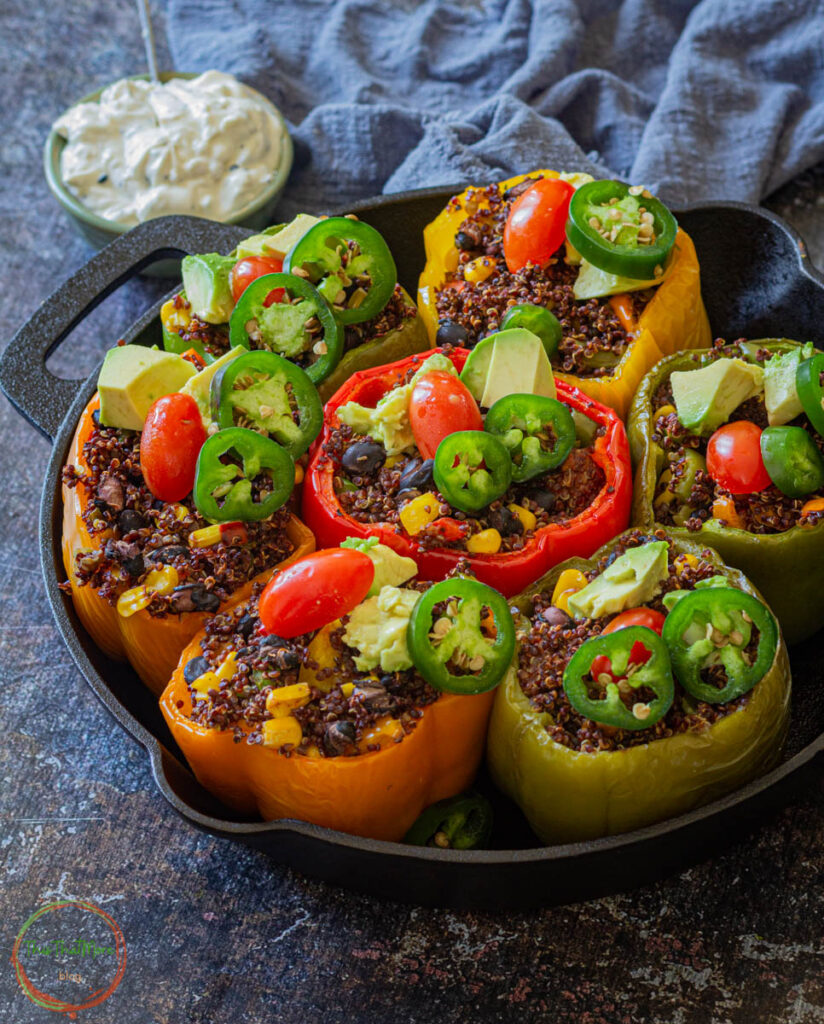 Most recipes call to layer stuffed pepper with a generous layer of cheese. But to make the recipe healthier, I have not added cheese to the recipe. Adding quinoa as a stuffing also makes the recipe protein-rich. So this Quinoa Stuffed Bell Peppers recipe is definitely a healthier option.