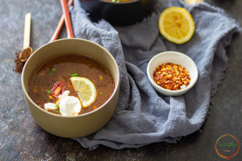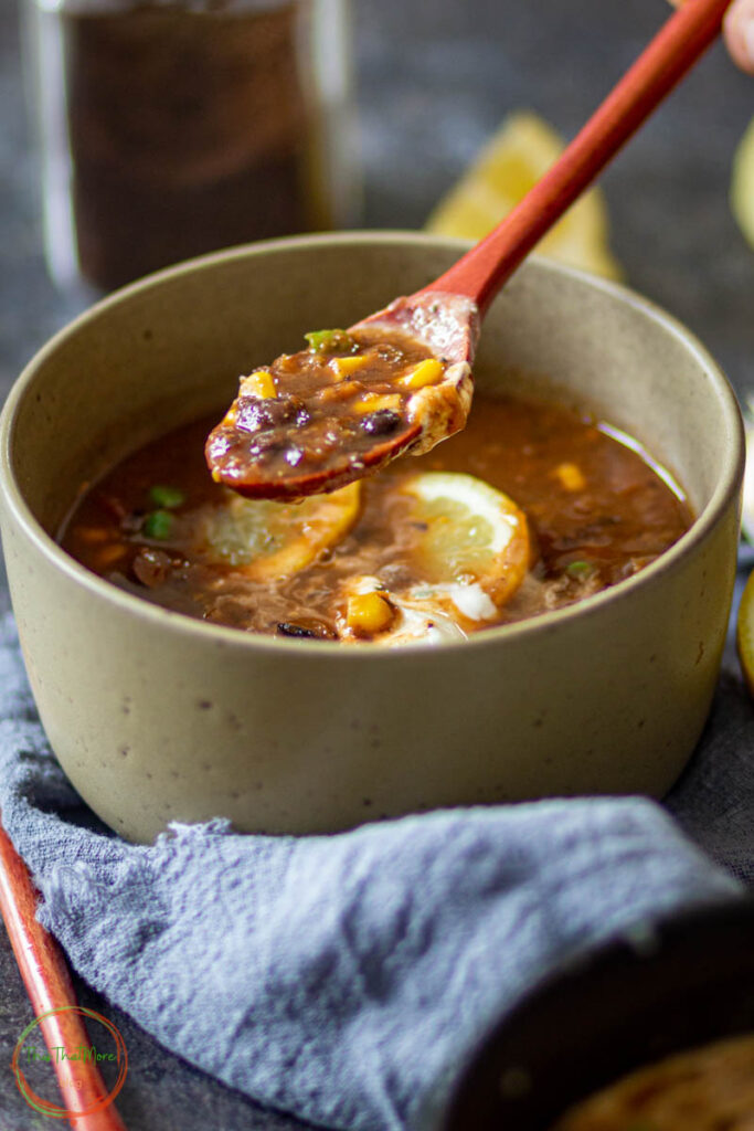 Spicy Black Bean Soup is the most satisfying meal for any day of the week. It is healthy & it can be made with just a handful of ingredients. You can make it with black beans, corn, some veggies, and spices.