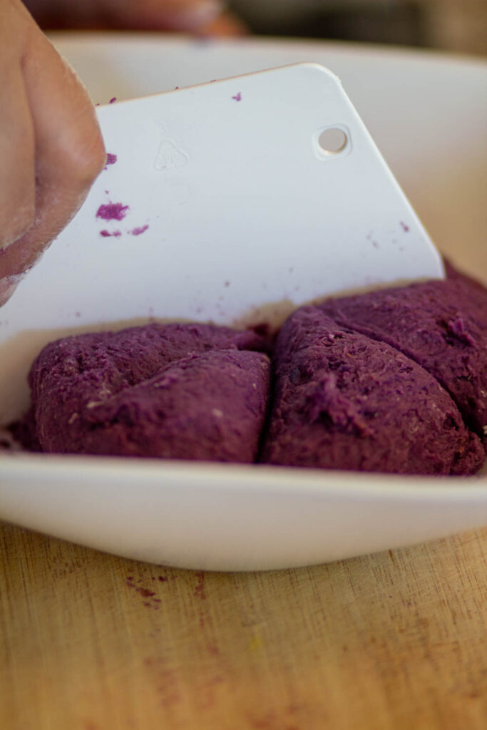 - DIVIDE THE DOUGH: Divide the dough into 4-6 equal parts. Shape each part into balls. Sprinkle some flour on the workbench and place the ball on the workbench.