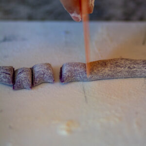 - Using a dough cutter, cut the dough into equal size pieces. You may get 10-15 equal-sized gnocchi pieces of 1-inch in thickness. (Check the images above)