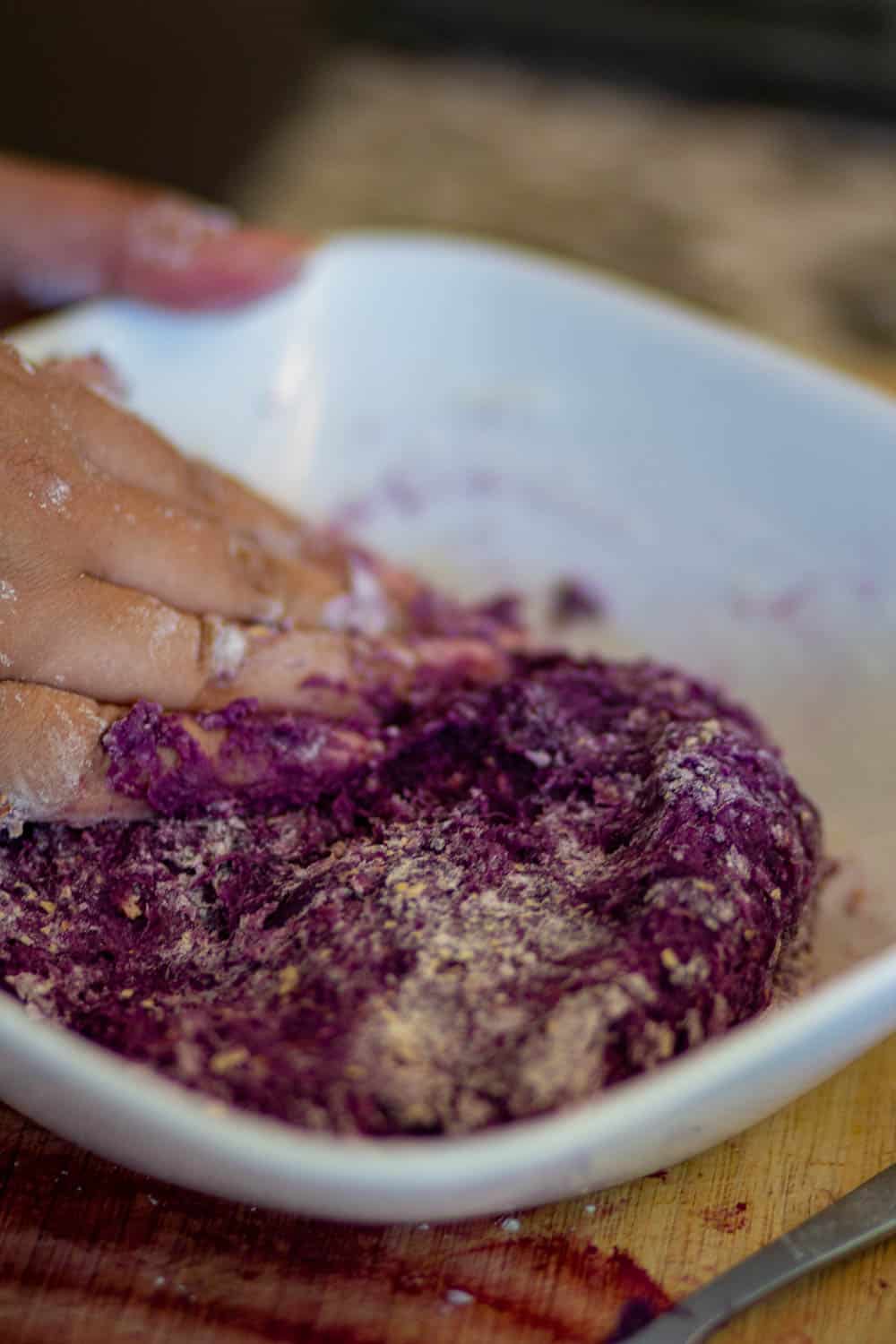 - SWEET POTATO: For this recipe, you can use any variety of sweet potatoes. I have used purple sweet potato because of its beautiful color. Adding sweet potato will make gnocchi a little sweet in flavor. You can also add potato to the recipe instead of sweet potatoes.