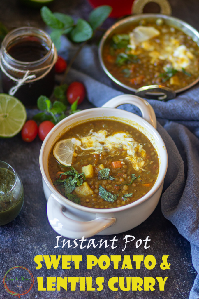You can add sweet potatoes directly in lentils, or can cook in pot-in-pot and later on added to the curry. I prefer cooking the sweet potato in pot-in-pot and later added to the lentils, otherwise, it gets a little mashed in the curry.