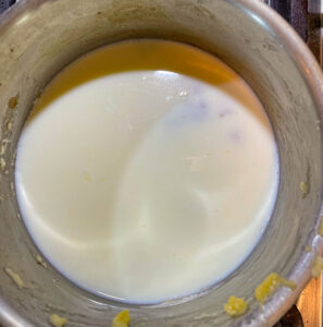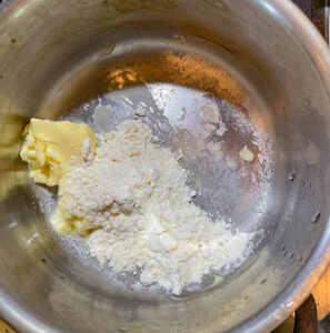 - In a saucepan, put the butter and let it simmer at medium heat. Once the butter starts to melt, add all-purpose flour. Cook for 1-2 minutes until properly combined.