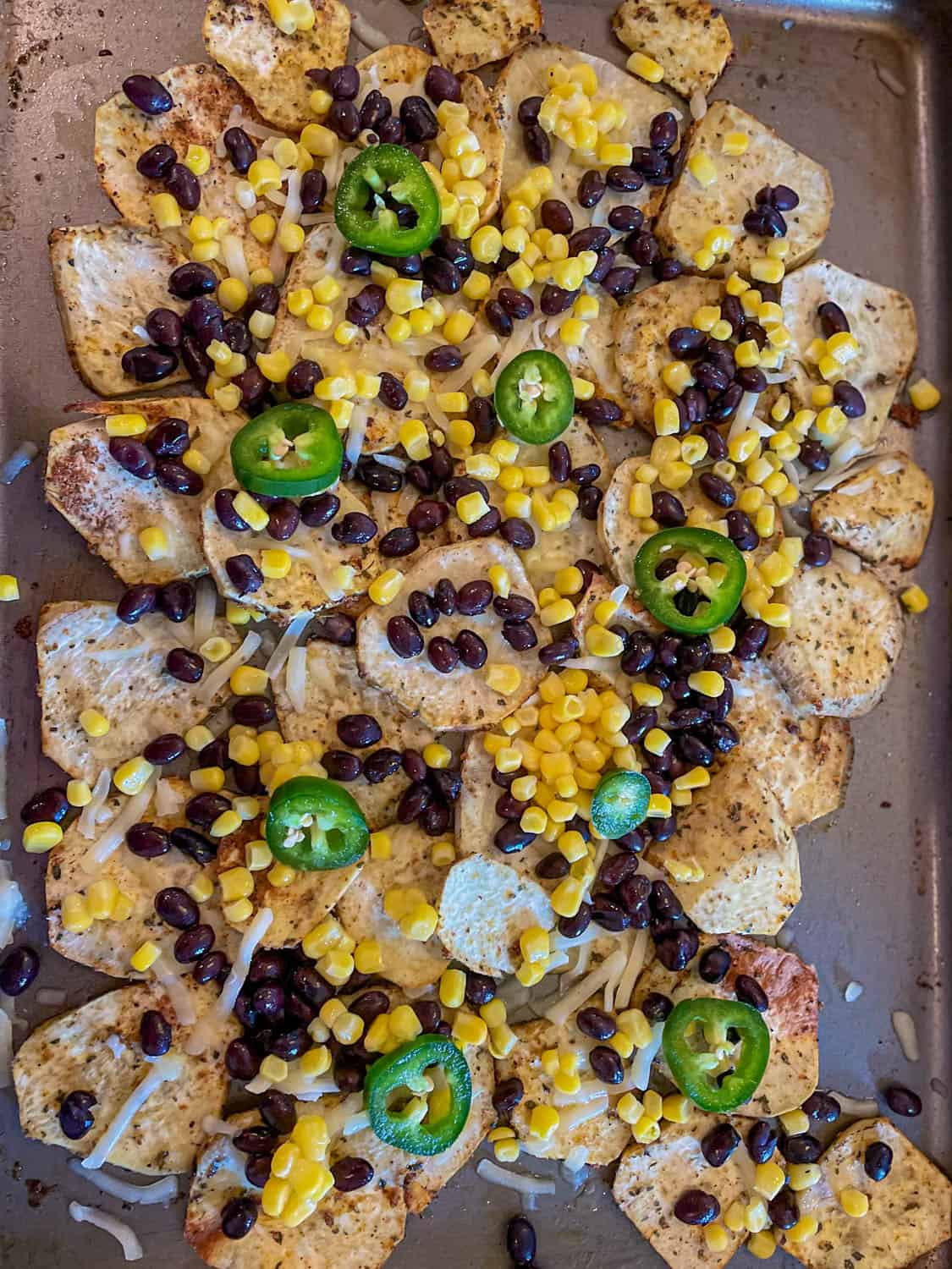- SPICES: For more flavorful nachos, I have added some spices with sweet potatoes. And then roasted them in the oven.