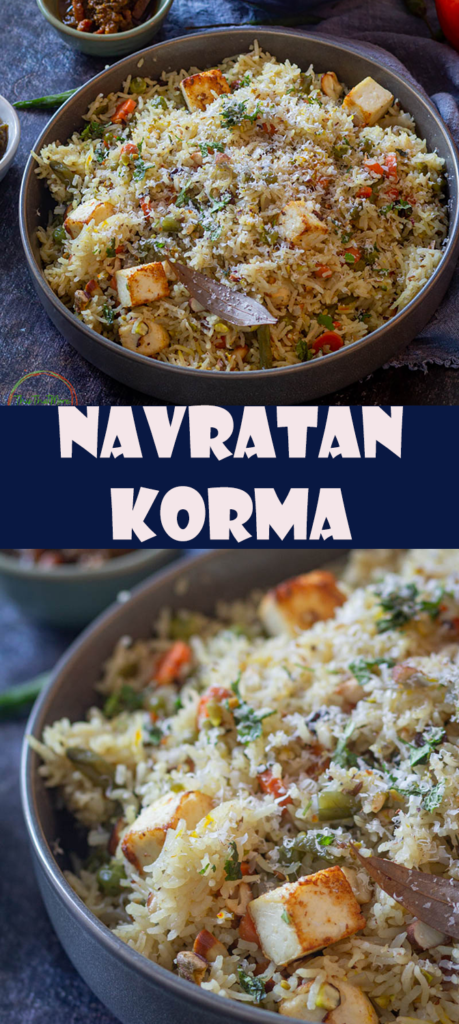 Vegetable Navratan Pulao is an easy recipe to make on a busy day for lunch or dinner. You can make it in an Instant Pot or on a stove-top in under 30 minutes. It is made by adding rice, veggies, some nuts, and paneer. Navratan Pulao doesn't taste like navratan without paneer.