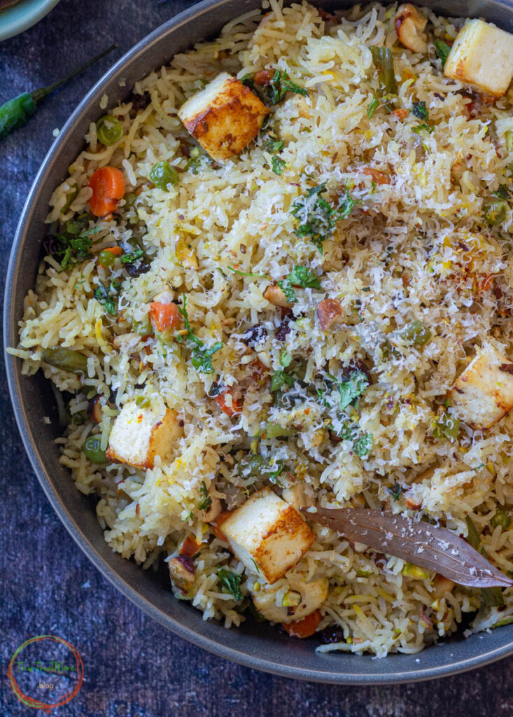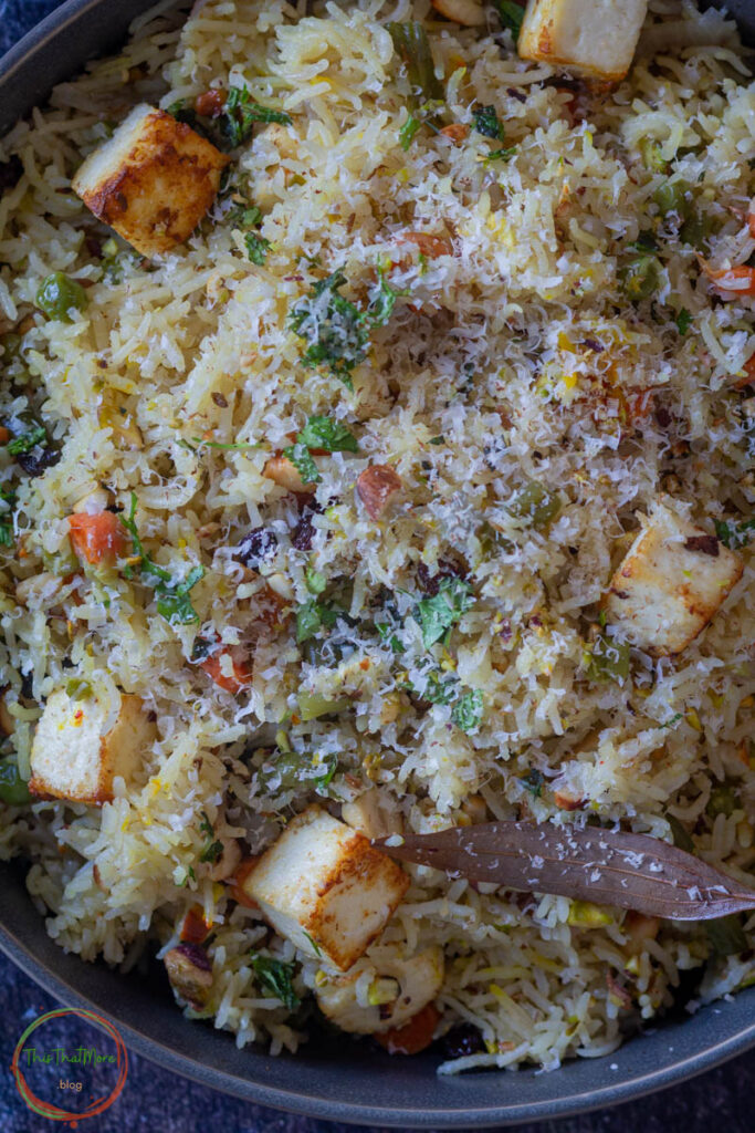 - PANEER: I have grilled the paneer for the recipe. You can also add fried paneer too, that will makes rice more delicious.