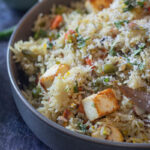 Vegetable Navratan Pulao is an easy recipe to make on a busy day for lunch or dinner. You can make it in an Instant Pot or on a stove-top in under 30 minutes. It is made by adding lots of veggies, some nuts, and paneer. Navratan Pulao doesn't taste navratna without paneer.